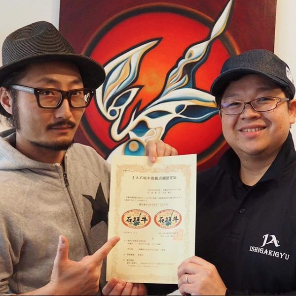 JA石垣牛取得店舗認定証