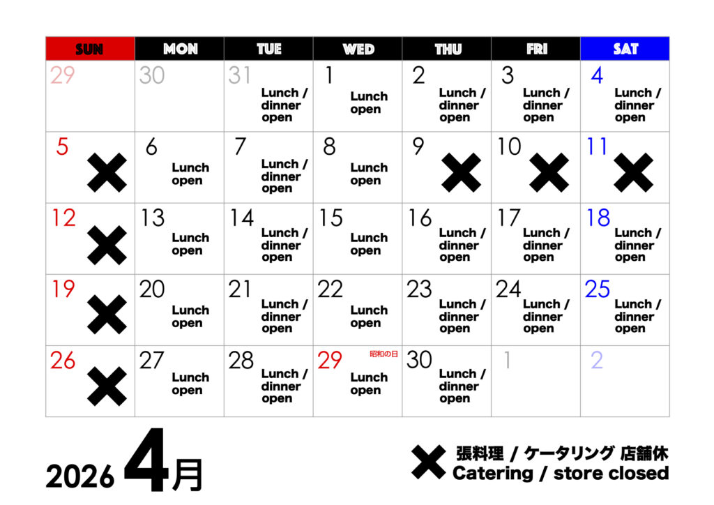 2026年4月の営業スケジュール / April 2026 Business Schedule